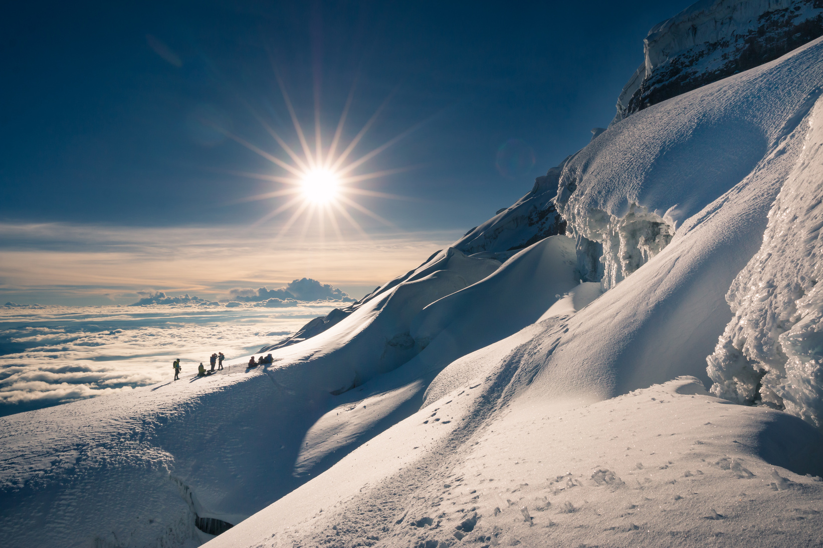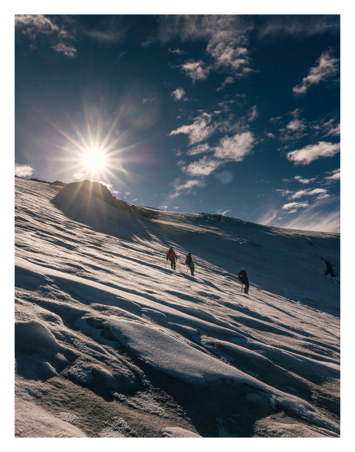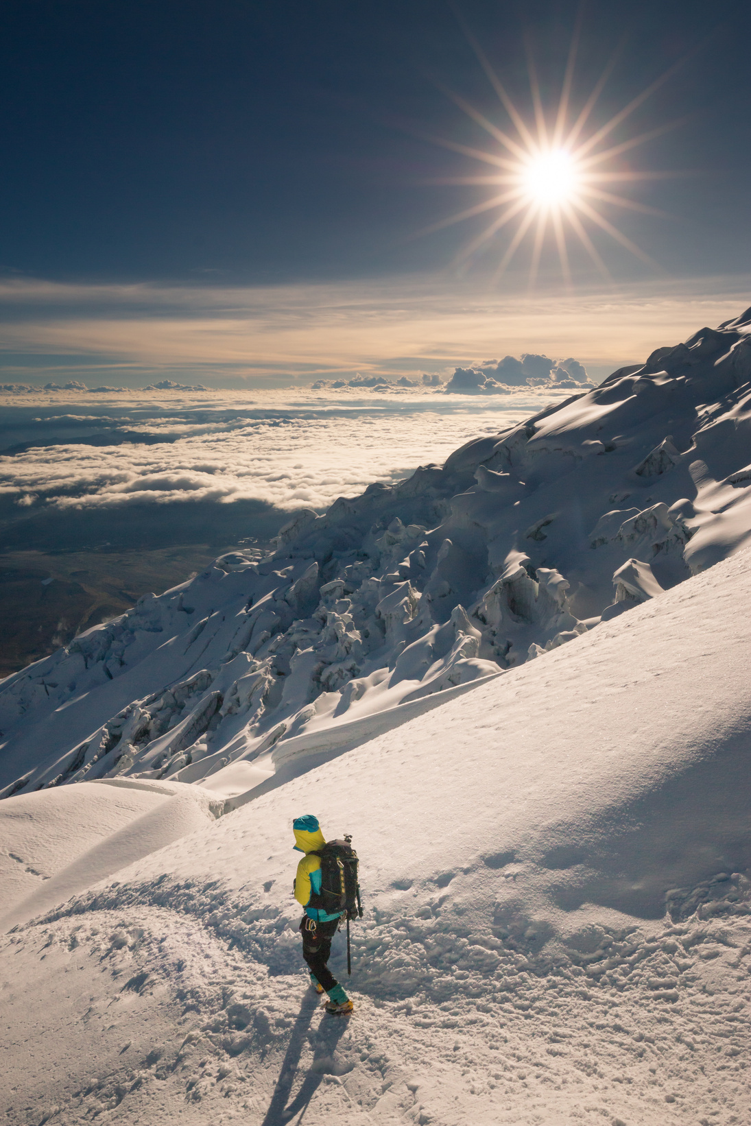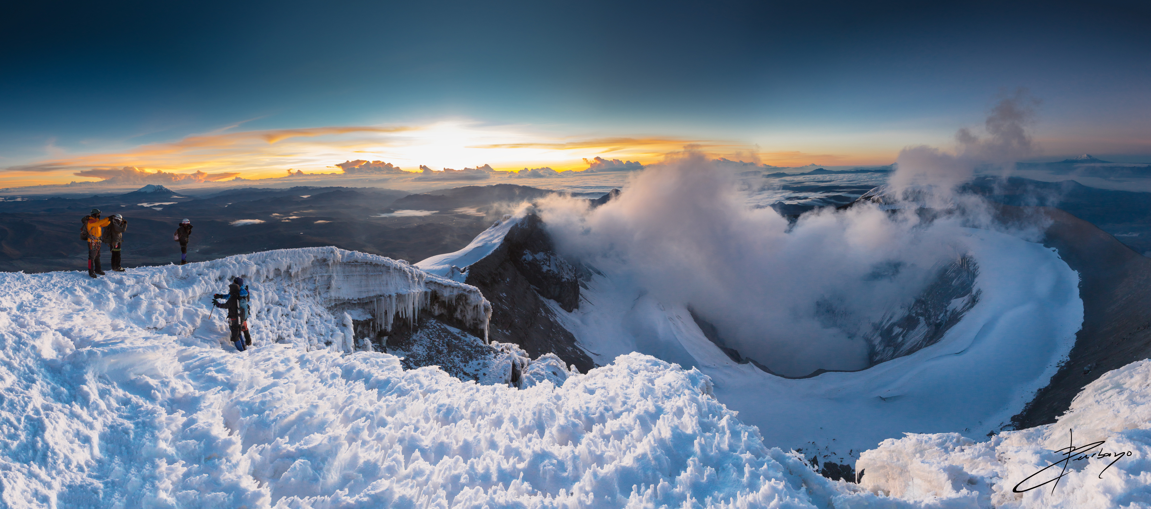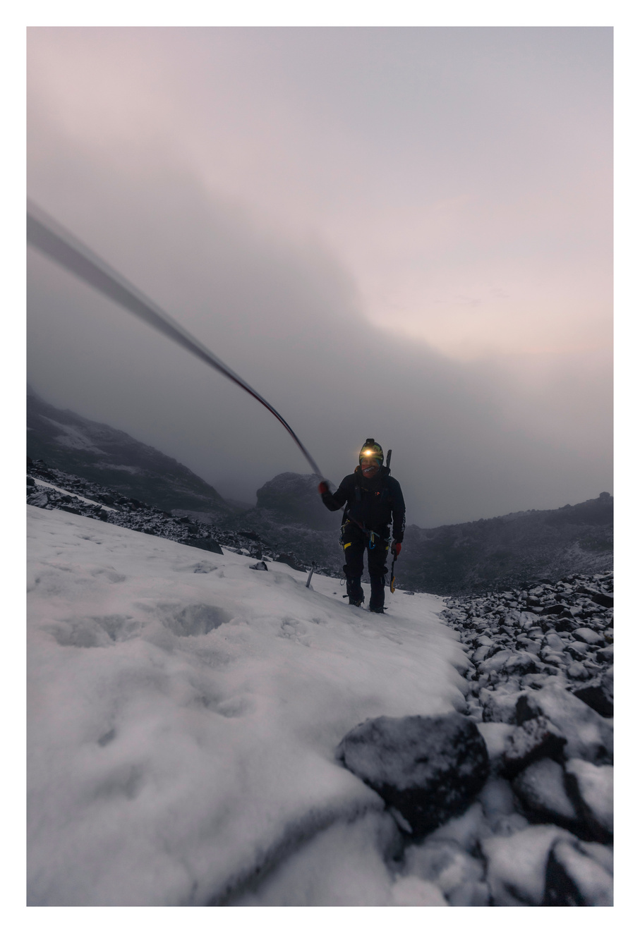Amanecer durante el descenso del volcán Cayambe.